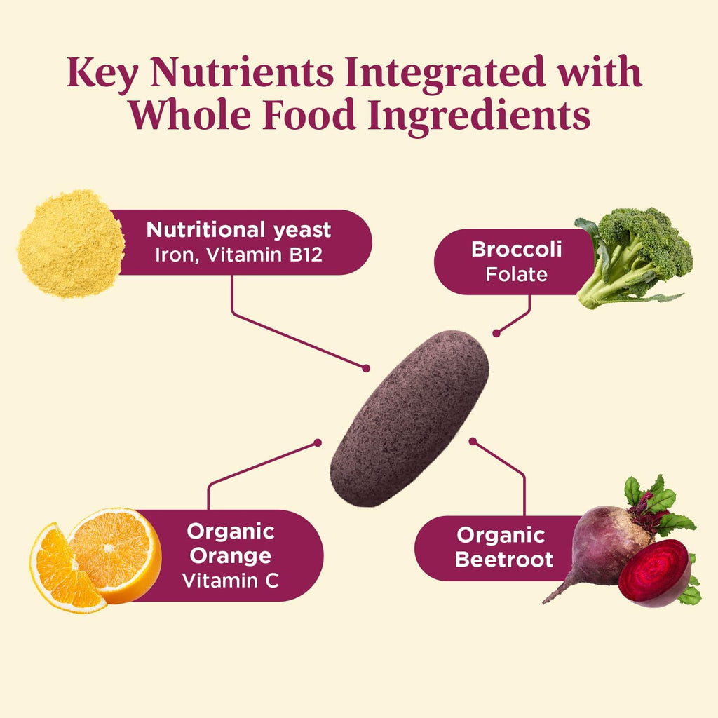 Nourishing Whole Food Ingredients: Made with real food like organic beetroot and organic oranges. Including folic acid and vitamin B12, our iron supplement supports healthy red blood cell production. Vitamin C enhances iron absorption, making it a top choice for iron deficiency.