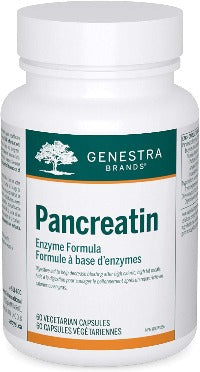Pancreatin is a digestive aid formula that helps to decrease bloating after high-caloric, high-fat meals. It provides a combination of pancreatic enzymes, including lipase, amylase, and protease, which break down fats, carbohydrates, and proteins, respectively.1 Chymotrypsin and trypsin are also present in pancreatic secretions and further contribute to protein digestion.1 Adequate activity of pancreatic enzymes is critical for proper nutrient digestion and absorption, including the absorption of fat-soluble vitamins.2,3 Pancreatin contains enzymes that act like those normally secreted by the pancreas, aiding digestion of nutrients. Supplementation with pancreatic enzymes has also been shown to significantly reduce the common postprandial complaints associated with caloric, high-fat meals, including bloating, gas, and fullness.4 As pancreatic enzymes are sensitive to low pH, Pancreatin is specifically formulated with delayed-release capsules that resist stomach acid for targeted delivery to the duodenum and allowing optimal enzyme activity.
