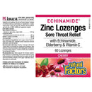Natural Factors Zinc Lozenges contain a unique complex of zinc, vitamin C, organic echinacea, and black elderberry to help support the immune system and help relieve cold and flu symptoms, such as sore throat.