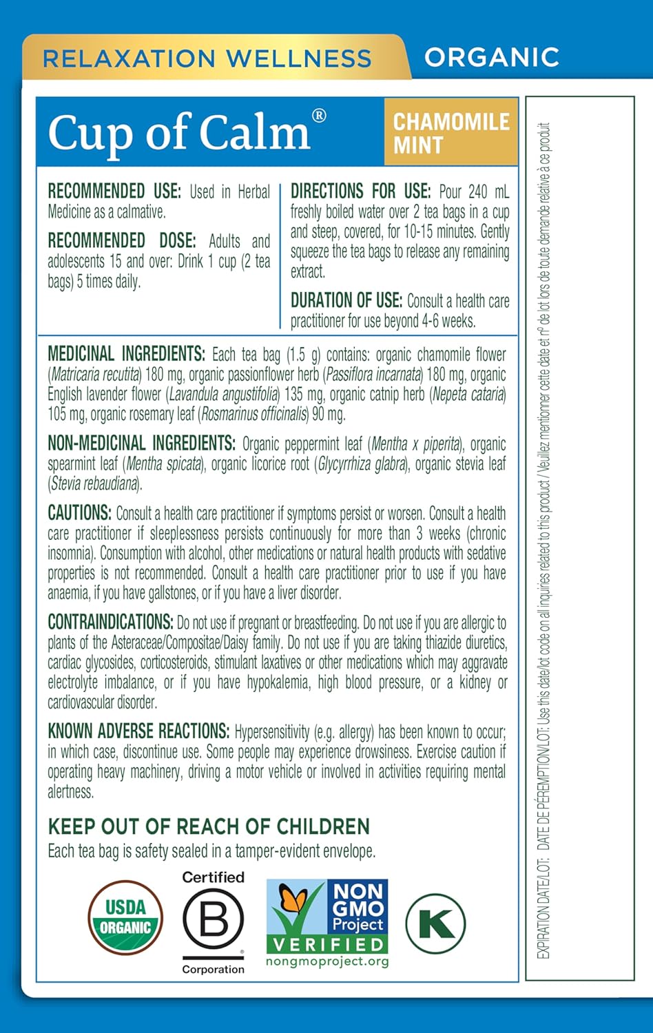 Organic Cup of Calm Chamomile Mint · 16 Tea Bags